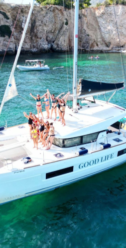 Abordo del Good Life disfrutarás de una experiencia única sobre el mar mediterraneo, degustando comidas típicas, nadando en los puntos mas bellos de la isla y compartiendo una experiencia maravillosa con toda la tripulación que te hará sentir como en casa.