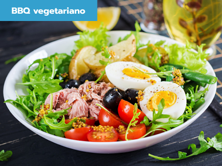 - Ensalada de escalibada (berenjenas pimentos rojos y tomates asados acompañados de atún)
